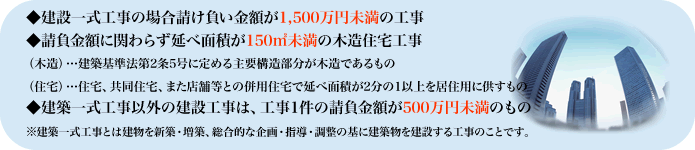 ●請負金額1,500万円以上で4,500万円未満の建築一式工事。