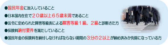 厚生年金に加入している間に初診日に病気や怪我で障害基礎年金の1級または2級に該当する障害の状態に